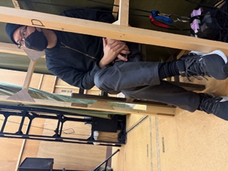 紀伊國屋ホールの方の技術で「行きたい~」班の大きな道具をクレーンで搬入して行きます。