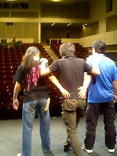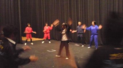 コンパクトな会場で前日から張り出し舞台を組み、当日は当たり稽古と舞台転換の手順を確認しての開演となりました。(客席との距離が近くちょっと恥ずかしい気も…)おとなしい生徒さん達でしたが濃い時間と空間が過ごせたと思います。東北で大きな地震が起きたばかりで、連日報道されているる秋葉原の事件もあってか、生死に関わる事に関し集中点が高かったのではないでしょうか。