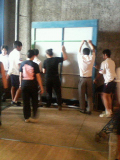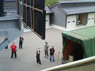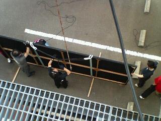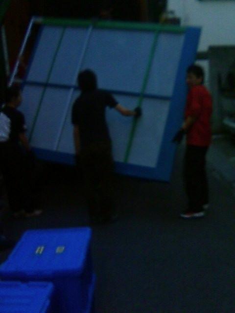 上手く撮れていませんが夕方稽古場に道具を搬入している様子です。みんな頑張っております!