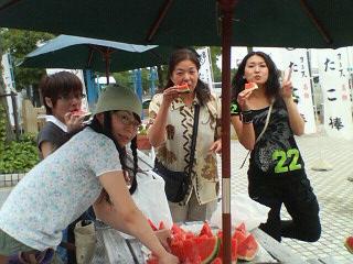 スイカではち切れそうなお腹を抱えながら3150班メンバー、あと数時間、東京めざしてまっしぐらです!!