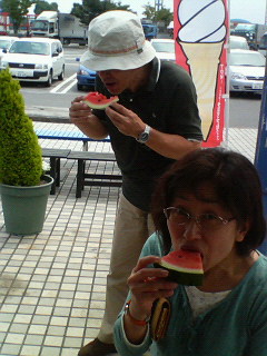 途中の昼食休憩で寄ったサービスエリアで昨日の上演校・米子工業高専から頂いた立派なスイカをデザートに食しました(^3^)/