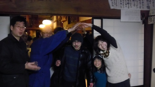2013/2/20-3 『臨界幻想2011』を三島で観る会が、大成功をおさめた終演後、交流会がありました。静岡県東部の演劇鑑賞会の方や、今回初めて実行委員会にかかわってくださった方、乾杯のビールを口にして『あー、美味しい!』『これでぐっすり眠れる!』と、今日の公演までの大奮闘が伝わる心の底からの声を聞きました。 本当に、ありがとうございました。そして、お疲れ様でした!