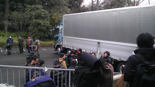 2013/2/21 おはようございます。めちゃくちゃ寒いです。 みんな震えながら作業着をトラックから降ろしています。