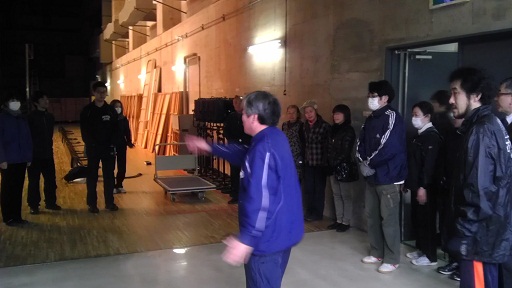 2013/2/20 皆様こんにちは。大道具スタッフ星野です。臨界幻想班は静岡県三島市にやって参りました。朝早い仕込み時間ですが、みんな元気!
