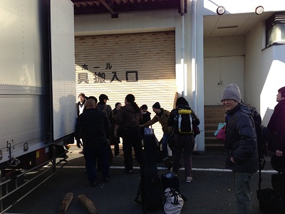 さあ搬入開始です! 実行委員会の方々に一生懸命荷物を運んでいただきとても助かりました。