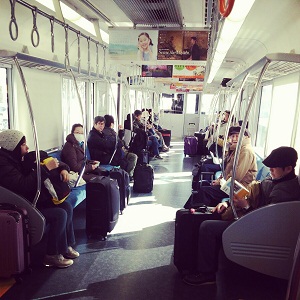 2013/2/19 本日静岡は三島に向け出発です。劇団にて照明機材を荷物室に積み、集合場所のモード学園前に向かいます。