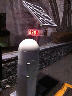 そして郡山市民文化センターに到着! 搬入口前に線量計が…新宿よりはちょっと高めですね…。