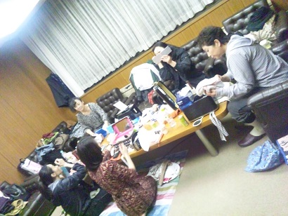 今日の楽屋は応接室…。輪になってメイクアップ♪