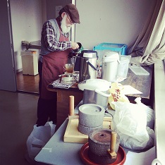 そうそう、最後になりましたが、仙台公演では劇場の仕込み中に、自家焙煎炭焼き珈琲店「珈巣多夢」(かすたむ)のご主人が、出張店舗を開いてくださいました!石臼でひいた自家焙煎のコーヒーは絶品でした〜。 大月ひろ美 |