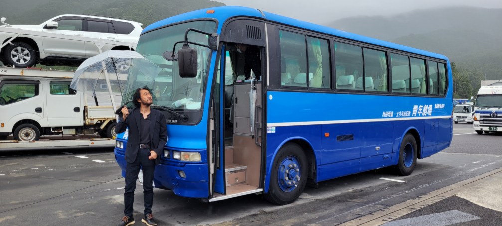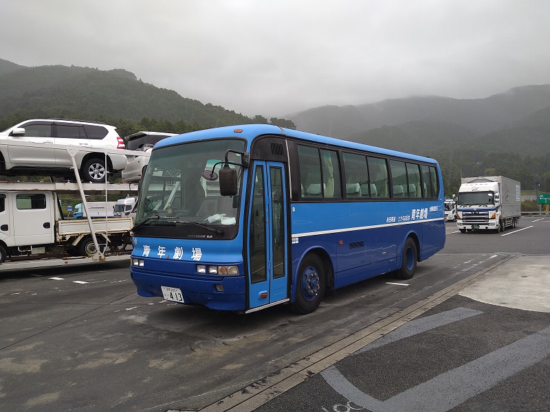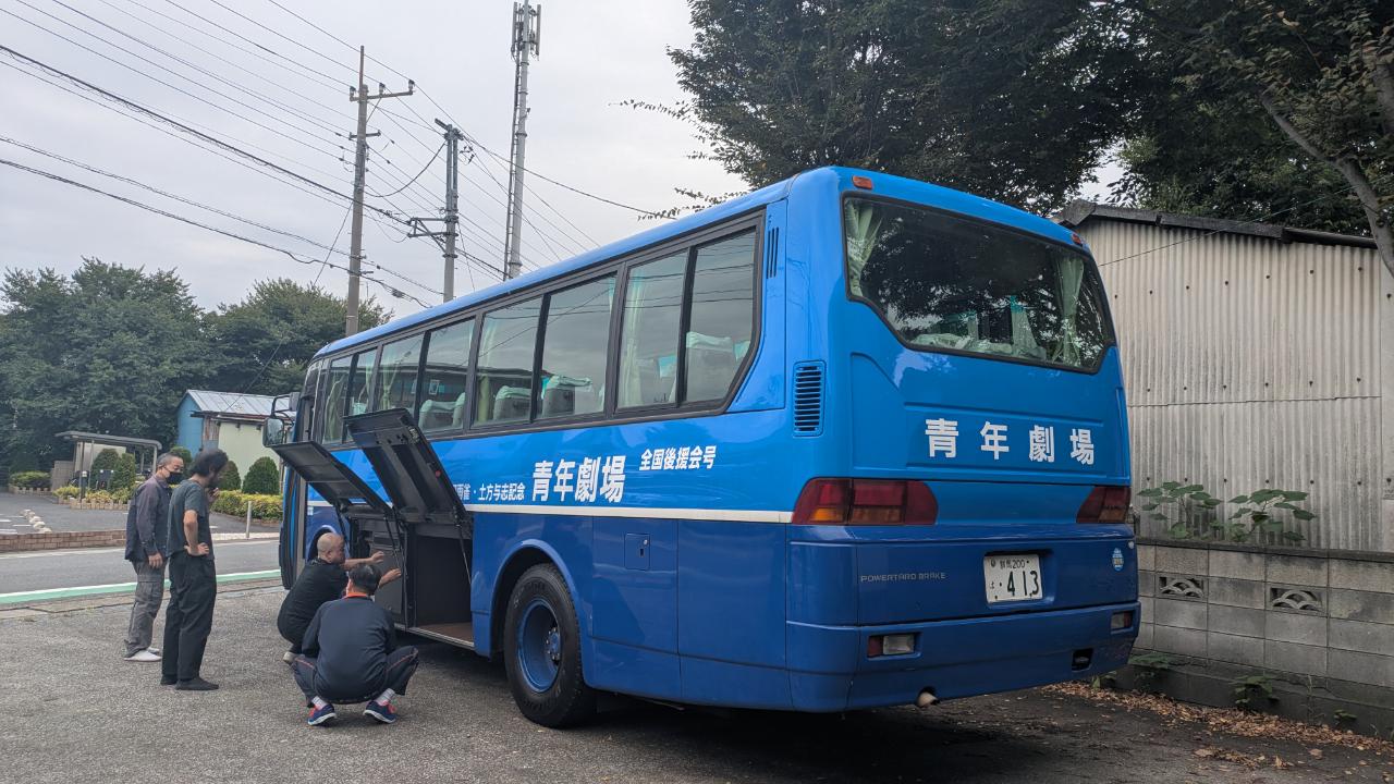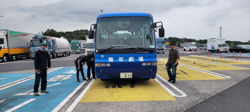 今回、我々の公演班としては初めて劇団のバスを使っての移動となります。思えば60年の劇団の歴史を語る上で欠かせないバス移動。是非、こんなところからも劇団の歴史や方法論を世代継承していきたいものですね。