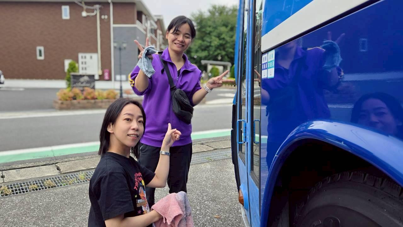曇り空で肌寒い日でしたが、ピカピカになったバスを公演班班長の北さんはいつまでもいつまでも眺めておりました。