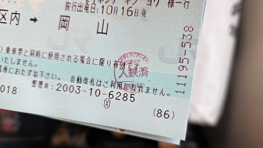 切符に押された「入鋏」…。