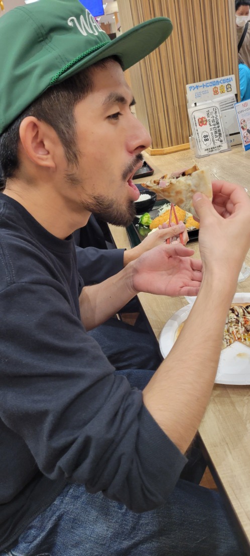 SAで食事をとりつつ遊び心も忘れません。
