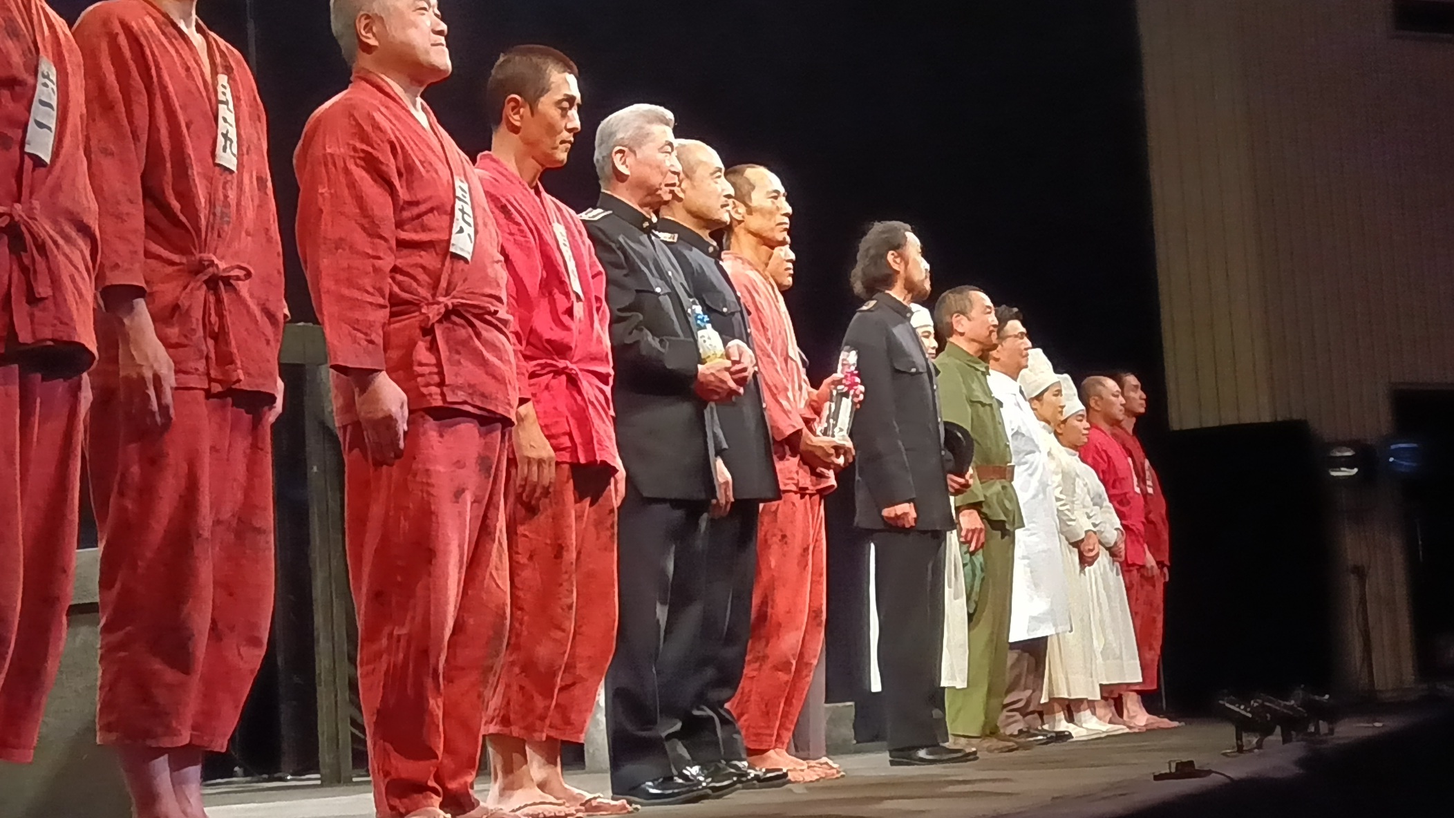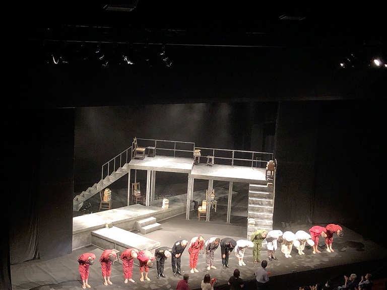 おはようございます。「星をかすめる風」公演班で、看守と囚人の役を演じています塚原正一です。本日は、倉敷演劇鑑賞会 玉島事務所さんの公演で倉敷市玉島文化センターに来ています。