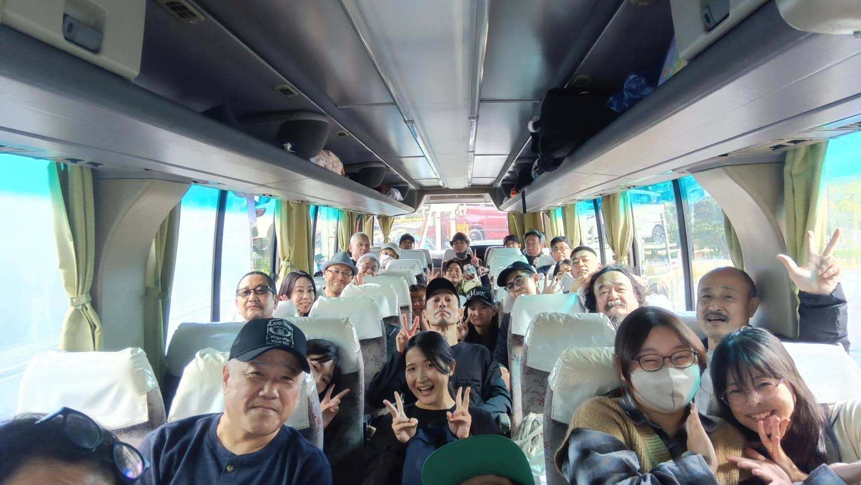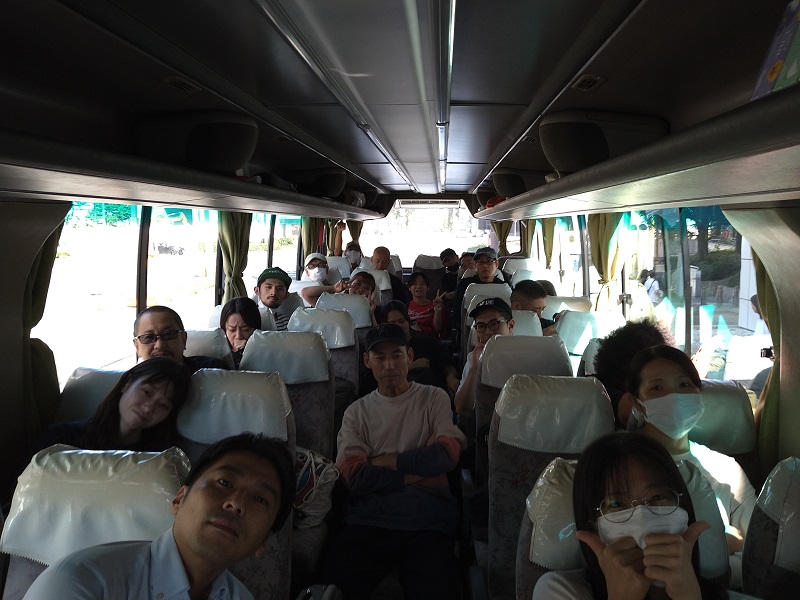 劇団のバスで移動です。