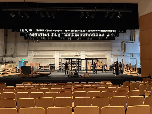 昨日舞台の仕込みはほぼ終わっているので照明さんの仕込みからです。