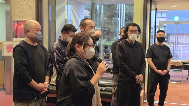 その思いは、朝の搬入の際に「皆さん、サークル数・会員数共に前例会クリア出来ましたよ~!」の嬉しい報告から始まり、総勢50名を越す大賑わいの対面式でも会員さんの本日までのご苦労と作品への思いが語られ、公演班も決意新たに挑んだ初日でした。