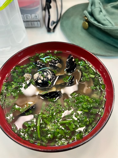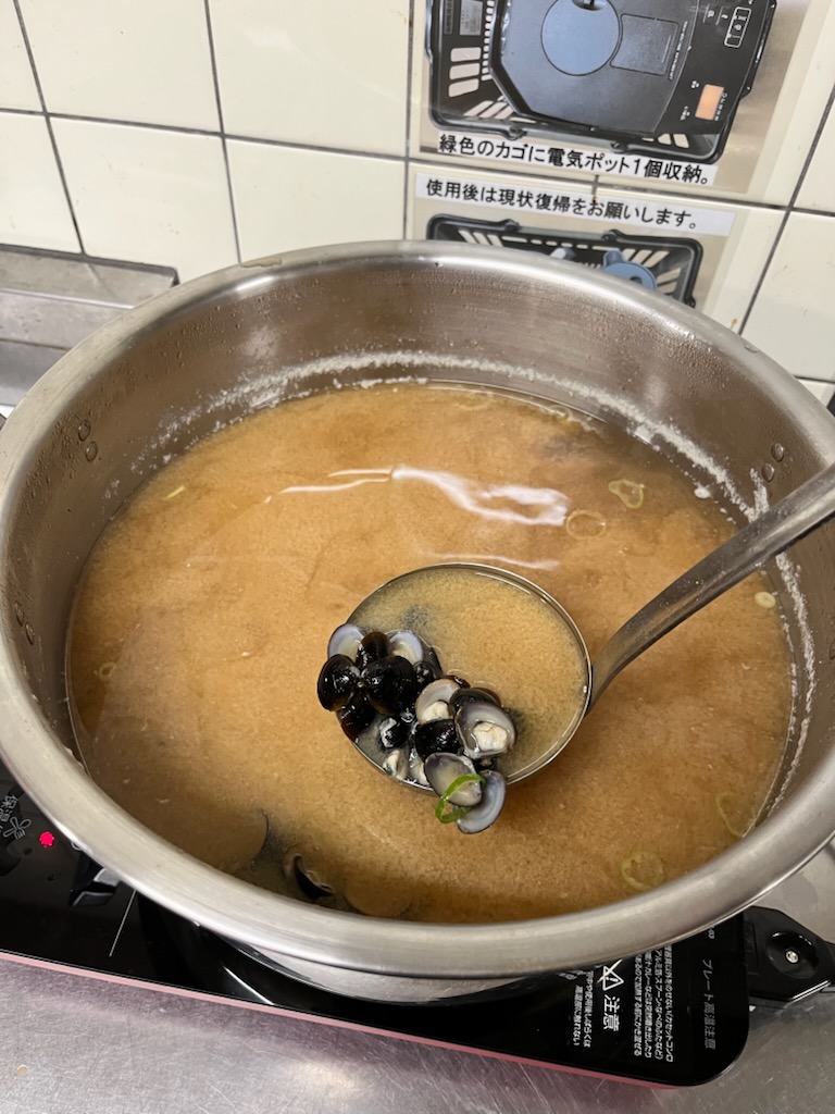 お通しの本場しじみ汁です。心まで温まります。ありがとうございます。