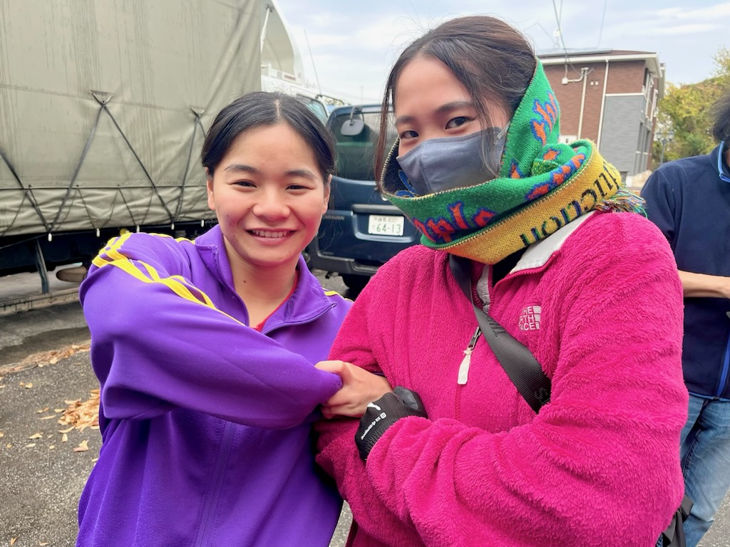 荷下ろしは汚れても良い服や黒い服を着る人が多いのですが、今回はカラフルでド派手なかわい子ちゃんが2人いたので撮らせてもらいました💖
