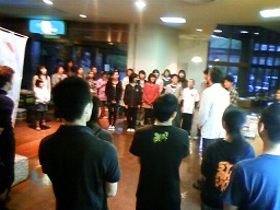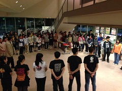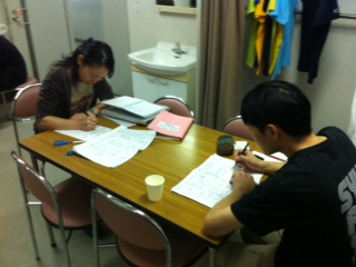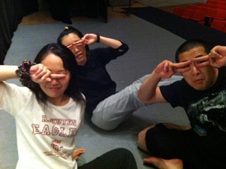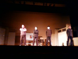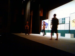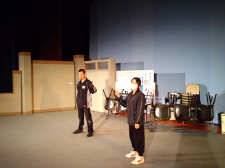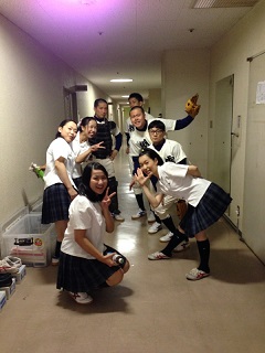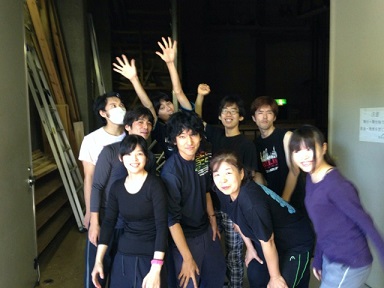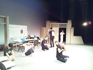 2013/10/12 こんにちは、原田先輩役の中川です。本日は神奈川県立青少年センターさんの会館主催事業に呼んでもらいました。 早速搬入しましたが、舞台が地下にありリフトでの搬入だったので4回に分けて入れました。 少し時間がかかりましたかね。 仕込みは時間があったので余裕をもって舞台を作る事が出来ました。 ![]() 仕込みが終わっていつもならロビーで出演者はウォーミングアップをするのですが今回はロビーが使えなかったので、男性楽屋で行いました! 手を組んで上の方に伸びて伸びて〜! ![]() この後、スピードランをやりました。スピードランは普段舞台で演じる時よりもスピードをあげて早回しでやります。 これは野球部員3人が喧々諤々やってるとこです。 「え?何のこと?キャプテン?」 ![]() ウォーミングアップも終わって青少年センターの方達との対面式です。 まあ、お互いにご挨拶ですね。 ![]() こちらが神奈川県立青少年センターの方々です。 ![]() 班を代表して班長の私、中川から館長さんへサインの書かれた色紙をプレゼントしました。 さあいよいよ本番です。 今日のお客様は中学生や高校生が沢山観に来てくれました。 とてもいい舞台を一緒に作る事が出来たと思います。 この後の座談会には中学生を中心に40名近くの方が参加してくれました。 公演班からはシンヤ役の鈴木匡史くんが参加。 芝居はとても好評だったようです! 芝居を観に来てくださった皆さん、今まで準備をしてくださった青少年センターの皆さん、本当にありがとうございました! 原田(中川為久朗) |