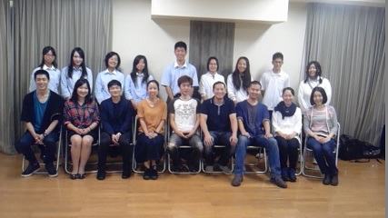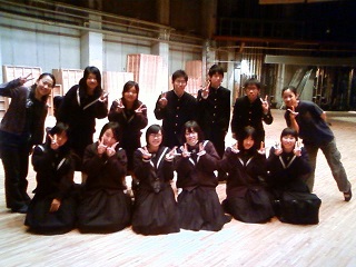 2013/10/8-2 こんにちは。千葉県立東金商業高等学校の皆さん、本日はありがとうございました!本日の様子は杉本さんが既に報告してくれましたが、番外編で本番後の座談会についてご報告したいと思いますヽ(´▽`)/ 当日急遽決まった座談会ということでしたが、生徒さんが14人も集まってくれました!! 久しぶりの一人での座談会だったので、緊張しながらでしたが、生徒さん達から沢山質問や感想が聞けたので、楽にお話することが出来ました! 大変助けられました(><) 発声方法やメイクのことから、舞台の照明や音響について等、幅広く質問してくれました。でも、私もまだまだ知りきれてないことが沢山あるので、上手く答えになったかな…ちょっと不安です(・・;) ![]() 一生懸命会話をメモをしてくれたり、将来役者の道を目指したいという生徒さんや舞台を観て勇気をもらったと言ってくれた生徒さんもいて、私もとても刺激を頂きました! 最後は皆さんと写真撮影!ステキな出会いでした。ありがとうございました\(^o^)/ カナ(藤代梓) |