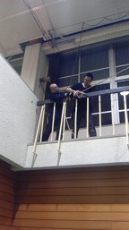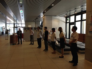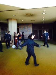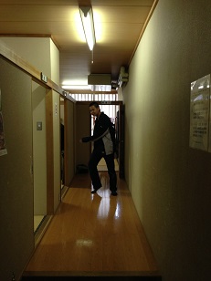 2013/11/18 こんにちは!原田先輩役の中川です。本日の公演は大村城南高校さんです。 3日ぶりの公演ということでちょっと緊張してます。 搬入は会場が少し小さめだったので、大道具の置き場に苦労しましたが、それ以外は条件も悪くなくスムーズに搬入、仕込みが出来ました! ![]() この日も朝から青年劇場の元劇団員、徳永義博さんが搬入から手伝ってくださいました! これからお昼ご飯を食べようとしてるところをお邪魔して1枚。 この会場の楽屋はちょっと変わってました。 ![]() ちょっと長めの廊下があってそこにみっつの部屋が並んでます。まるで旅館ですね! ちなみにポーズを決めてるのはジュンペーくんです! ここの楽屋はもう一つ面白いところがあって、普通楽屋は第1楽屋、第2楽屋などと書かれているのですが、ここは………