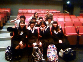 2013/10/30 広島県立福山葦陽高等学校さんとの出会いでした。約2000席もある会館で約1000人の生徒さんたちが観劇だったので、ちゃんとセリフが届いたのか…なんだかお風呂にいるみたいに響きすぎちゃってたので…残念ながら座談会もなかったのですが、終演後バラしの時に女子生徒さんが舞台前まで来て、「演劇部、引退したけど芝居がまたしたくなりましたぁ〜!」と大泣きして帰ってくれました。感動です(T ^ T) 本当に良い出会いができて幸せです!!! 武智香織 |