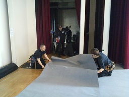 ![]() 2013/10/28 本日は…山口県立徳山北高等学校の体育館にて、仕込み日です (`ω´ゞ ![]() 夕方から開始の予定なので、昼間は湯田温泉をウロウロして来ました☆ 湯田温泉駅には、大きな白狐が! そして足湯が!!!(街中にも沢山足湯スポットがあります)ポカポカ〜。 SLやまぐち号は、しばらく運休だそうで残念ながら見られませんでした(T_T) ![]() さて仕込み! ![]() 広〜い体育館に生徒さんとシートを敷き… トラックから荷を降ろし… ![]() 照明さんの準備… ![]() ロープで上へ引き上げて… ![]() おっ、音響の菊池さんが川端くんに縄の縛り方を指導中('-'*) ちなみに体育館の公演では、舞台前にプラスで舞台を作っています。(私達は張出し と呼んでいます。) 中はこんな感じ。 ![]() なので本番中は歩き方も気をつけないと、バキッ…なんてことには…ならないかな?(^w^)笑 さぁ、明日はいよいよ本番だ! 桜井千佳(中津原知恵) |