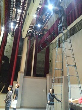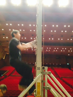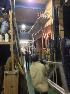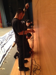 ![]() 2013/11/24 こんにちは!さてさて、野球部班も帰京しましたよー!ふー、一ヶ月ぶりの東京です(^^) 豊橋からそのまま明法中学・高等学校さんへ。本日は前日仕込みになります。 寒さも本格的になってきましたが、今日も頑張るぞー(´∇`)ノ ![]() 仕込み最中の様子を舞台袖からパシャリ。 大きな脚立が真ん中に立っていたり、まだまだセットも組まれてないですが、着々と準備は進んでおりますp(^^)q ![]() さ、明日の為にもうひと踏ん張りだ!! 藤代 梓(カナ) |