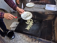 ![]() 途中、ミカン畑の中細くウネった道を通って海沿いの会場へ到着。 ![]() 舞台監督の新庄さん、運転お疲れ様です。 あとで聞いたところによると「運転していて2〜3度落ちるかと思った」そうです((((;゚Д゚))))))) ![]() なにはともあれ早速準備開始です。 ![]() 今回のメニューは… 焼き魚に、 手づくり餃子。 ![]() それに、ニンニクのホイル焼き…翌日も休日なので(´∀`=) モチロン!!焼き肉も忘れてませんよ ( ^ω^ )