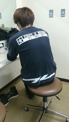 ![]() さて今日は開演前の出演者の後ろ姿を写してみました。 背中で語っている人もそうでない?人も色々います。 先輩方は仕事してますね。中川さんと船津さん。 公演班のお姉さん、武智さんは山田くんとお芝居の話してます。 ![]() ![]() 川端くん。んー特にいうことはないですね(笑) 女性たちはもくもくと開演に向けてストレッチや発声やってます。 ![]() 中津原さんはポーズ決めてくれました。この背中はなんかチカっぽいと思いました。 こうやって背中を並べてみるとほんとに様々。