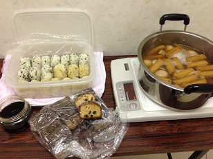 ![]() 本番前にはおやこ劇場の方々から小夜食を頂きました。一人一人へのお弁当で包装紙にも野球部員のイラストが!手が込んでます。 ご飯も優しい味で、とても美味しかったです(^〇^)ありがとうございました! その後は皆さんとの対面式へ。皆さん明るく温かく迎えてくださいました。