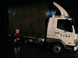 ![]() 2013/12/19-3 本日千秋楽(・Д・)ノあいにく雨で尚且つ寒い、終演後には倉庫で荷降ろしもあるというに(ー ー;) ![]() 日も暮れて真っ暗な中雨も強さを増し、更に冷え込んできます。 ![]() トラックを待つ間少しコーナーの整理をして…