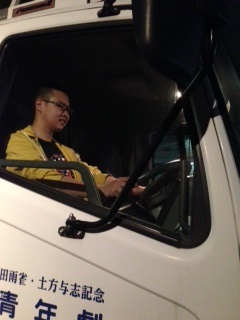 ![]() なんか、トラック野郎だな。 2014/5/5 舞台稽古ー!本日は福生市民会館にて舞台稽古です。稽古期間やって来たこと、無駄にせず頑張ります。 運転手はジュンペイ役、川端君。よろしくね! 船津基 |