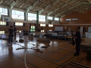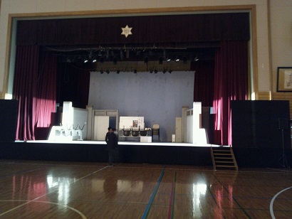 2014/5/18 こんにちは!この旅から「野球部員、舞台に立つ!」の大道具スタッフになりました安田遼平です!! さて、今日は新潟市立坂井輪中学校で舞台の仕込みです! 久しぶりの体育館の仕込みなので張出しという舞台を広げるセットも含めて4トントラックから全ての道具を降ろしました。 ![]() 手前では松橋さんが舞台を立てた後のイメージを膨らませていますね^ ^ 張り出しをセットして、いつも通り大道具を作り、照明を吊り、こんな感じに道具が綺麗になくなっていきます! ちなみに暗転中に真っ暗になるように暗幕などで窓を遮光するので窓も閉めていきます。 ![]() 明日の本番に向けてジュンペイ役の川端さんが走り始めました! きっと素敵な舞台にしてくれるでしょう(^_^) それでは今日はこの辺りで( ´ ▽ ` )ノ 安田遼平 |