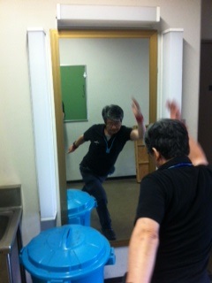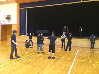![]() 2014/6/12 本日は再びの歌劇座天気は小雨、石川工業高等学校の公演です。![]() 朝トラックは劇場に到着するも、バスがなかなか到着しません( ̄▽ ̄;)トラックの2人で搬入することに…バスが道を迷ったらしくやっと到着。 照明さんの仕込みは、前回の歌劇座で仕込んだのが残してあったようで、搬入終わりには照明さんの吊りの作業が終わっていました。 バスの遅れを取り戻し立て込み終了。 ![]() 写真は愛知県出身岡本、山田の影です。 ![]() 純平役川端君の眩しいポーズです。 写真は小道具の直しの様子です。大事に使っていてもだんだん傷ついてしまうのです。 ![]() 本番直前のアップで後輩の川端が、先輩達に反旗をひるがえす事件発生!? 現場のスクープ写真をどうぞ。 ![]() 川端の肘打ちを受け最後の叫びをあげる、トモキ役、船津基。 力無く倒れ今にも首を折られそうなシンヤ役、鈴木匡史。本番直前にこんな事件が起きるなんて……? ![]() 冗談はこのぐらいで、2人が川端君にマッサージをしてもらっているところです。船津さんの表情には若干の捏造が含まれています。 開演前は元気の良い学校でしたが、開演するとすごく集中してみてくれました。よかったです。 今日の日記は山田秀人でした。 山田秀人 |