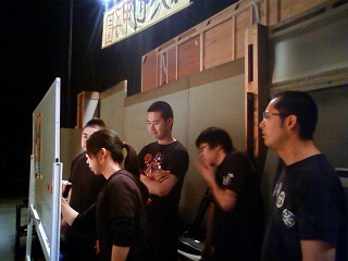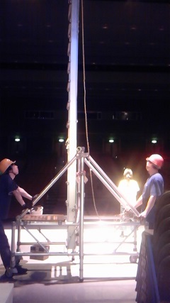 2014/7/9 こんにちは!原田先輩役の中川です。 今日の公演は初めての大阪での公演です! 今回はリフトで地下まで降ろさなければならないので、とても時間がかかりました。 時間がかかった分、頑張って仕込みましょう! ![]() 小道具を準備してくれている「チカ」役の中津原さんです。これはチアガールのボンボンでしょうか。 ![]() こちらは照明部の「シンヤ」役の鈴木君と「ジュンペイ」役の川端君です。 照明で使う色仕分けしてるようですね。 ![]() いつも僕たちの衣装にアイロンかけをしてくれているのは「カナ」役の藤代さんです! これは照明さんが明かりを作る時に使うローリングタワーと云うもので、これに登って一つ一つスポットライトの明かりを決めていきます。 ![]() さあ、これから本番です! 今日の公演は長尾高校の皆さんに観ていただきました。 みなさんとても良く観てくれて、本当にありがとうございました。 公演班はこの後、明日の公演の為に京都まで移動して夜の仕込みです。 ![]() さあ、夜の仕込みも頑張っていきましょう! ![]() この会場は客席が419席と芝居をやるには最高の空間ですね。 明日も皆で頑張ろう! 中川為久朗 |