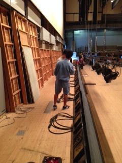 2014/6/11 前日の夜仕込みからの2ステージ!!はい!本日の担当は真也やってます鈴木まさしです。 改めまして、本日の公演は加賀市文化会館です。 連日のステージと終わってからの夜仕込みで体はへとへとですけどお芝居は階段上がってる感じがします。 さて今日のネタは何かないか...。 ![]() 縁の下の力持ち!舞監助手の松橋さん。 セットの色直し中。 ![]() ちょっと小さいけど公演班のアニキ分??中川先輩。いつも迷惑かけてごめんなさい。 ではでは。明日はまた金沢です。 今度はゆっくり温泉でも入りたいです。 バイバイ加賀。またね。 鈴木匡史 |