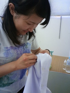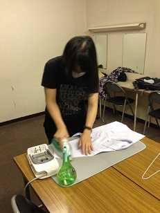 2014/6/24 ハロヘロち〜っすこんにちは(^O^)今日も元気にアユ☆レポート!本日は石川県高等学校文化連盟文化教室最終日。鹿西(ろくせい)高等学校と鵬(おおとり)学園高等学校の皆さんとの出会いです。 さてさて、今回は何をレポートしようかと楽屋をウロウロしていたら… ![]() おっ(@_@) 私の相棒、カナが針仕事をしているぞ。カナ役の藤代さんは衣装係なので、衣装がほつれたら繕って大切に大切に長く着られる様にメンテナンスしてくれています。ちなみに今、繕っているのはトモキの制服だよ。