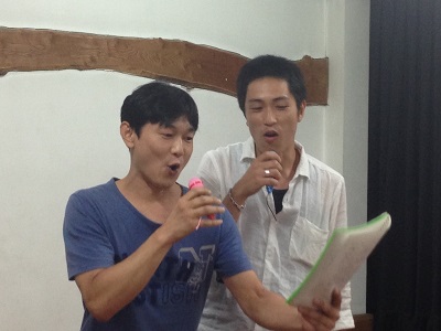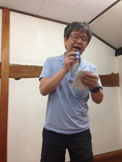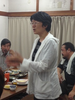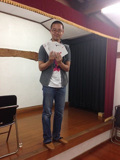 ![]() 2014/7/16 京都府立西乙訓高等学校の座談会は福山さんと武智が参加しました。30名くらいの生徒さん達が集まってくれていました。主にクラス演劇をやる子たちと、演劇部員だったみたいです。なのでたくさんの質問攻めにあいましたσ(^_^;)福山さんがいて良かった〜(^^)2014/7/17 2014年上半期の千秋楽でした!通算159ステージ目!京都女子中学校の皆さんとの出会いでした☆女子中学は初めてでワクワクと不安でしたが、幕開き前の諸注意で演劇部の顧問の先生が楽しく生徒さん達を盛り上げてくれて、本番も楽しんで観てくれました! もっと素敵なのは、終演後の退場指導!教頭先生が「私は劇場からの帰り道が好きです。芝居の余韻を楽しみながら帰れるからです。皆さんも余韻を楽しみながら帰りましょう!」と。この言葉に女子楽屋は感動してました(≧∇≦) ![]() そして夜は岐阜県中津川にある民宿「子の川」さんで地元の劇団「夜明け」の方たちと一緒に打ち上げをしました! 司会は中津原さんと安田くん。 ![]() そして班長の中川さんが乾杯挨拶。 ![]() 実は鼻を怪我しちゃってます。良い男が台無しだね(笑) ![]() マジックショーあり、歌ありで大盛り上がり♪