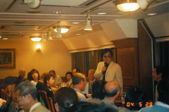 「悪魔のハレルヤ」観劇後、作・演出のジェームス三木さんと出演者を囲んで(2004年5月)