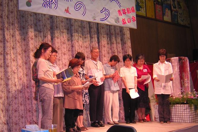 今回の朗読教室は、芥川龍之介作「蜜柑」・壺井栄作「あばらやの星」を教材に、午後コースと夜間コースの2クラス、20名の方が参加されました。発表会を「納涼の夕べ」の第一部で行いました。参加者からは“沢山の観客を前にして緊張したが、良い刺激となり、頑張れました”“とても楽しい一ヶ月でした”など、アンケートが寄せられました。