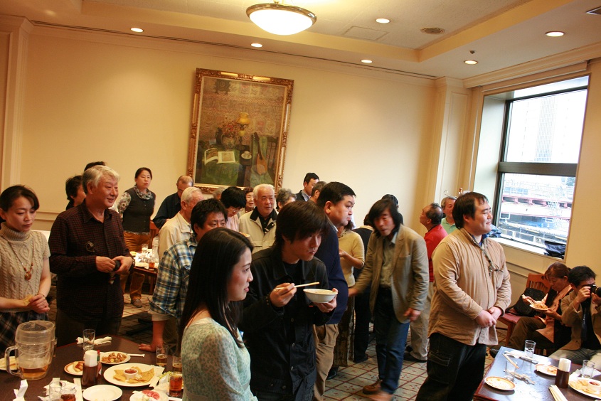4月18日(日)昼公演終了後、観劇後の交流会を、お馴染みの GOOD TIMES(JR新宿駅新南口)で行いました。44名の方々の参加でしたが、劇団員は出演者の青木力弥、藤井美恵子、北直樹、中山万紀、相楽満子を含め16名参加しました。