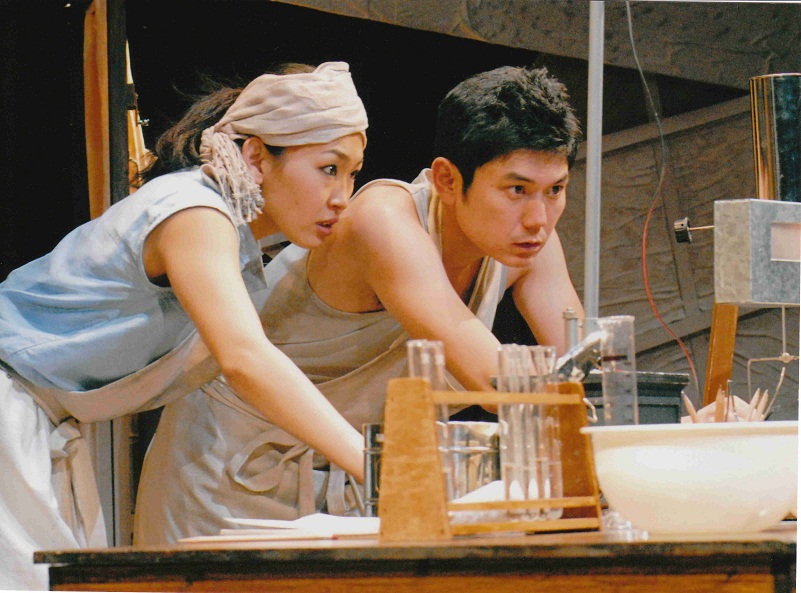 「キュリー×キュリー」は関東・東海地域の学校・子ども劇場を中心に9月28日から12月23日まで巡演します。10月には初めて文化庁「子どものための優れた舞台芸術体験事業」で沖永良部や宮古島など九州地方の小規模校を中心に巡演しました。ほとんどが学校の体育館での上演で、普段見慣れた体育館が劇場に変身する様に、参加した生徒さんたちは一様に驚きの表情です。