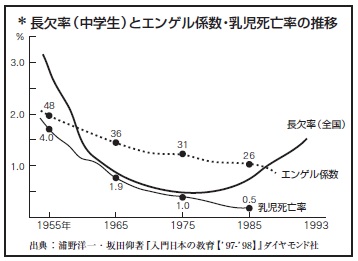 木村 このグラフ(*)でも、1975年を境に不登校(長欠率)が増えていますよね。僕は、そのころはちょうど青春真っ盛りでしたけど、一億総中流と言われ、やがて競争も激しくなって行きました。
