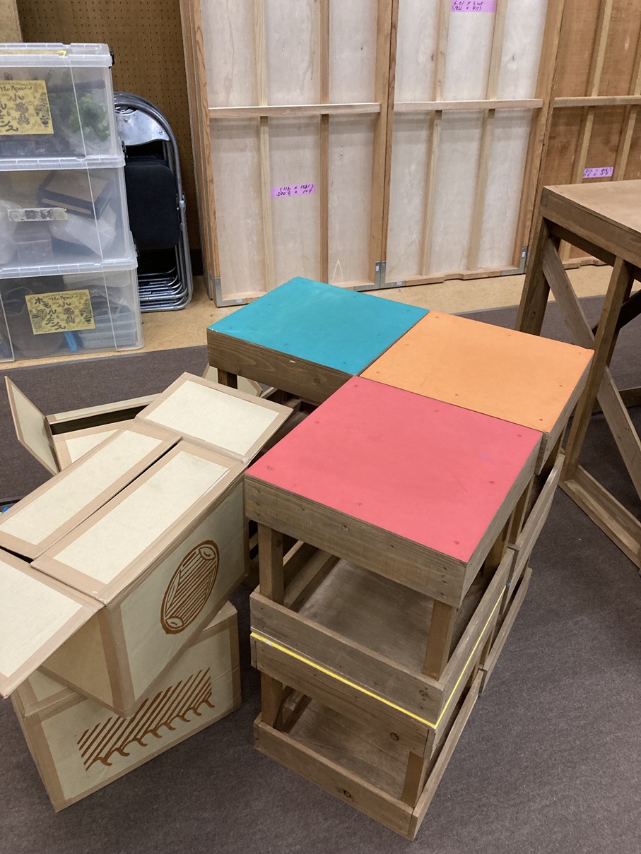 これから長い付き合いになる大道具セットや小道具達。よろしくだぜ!