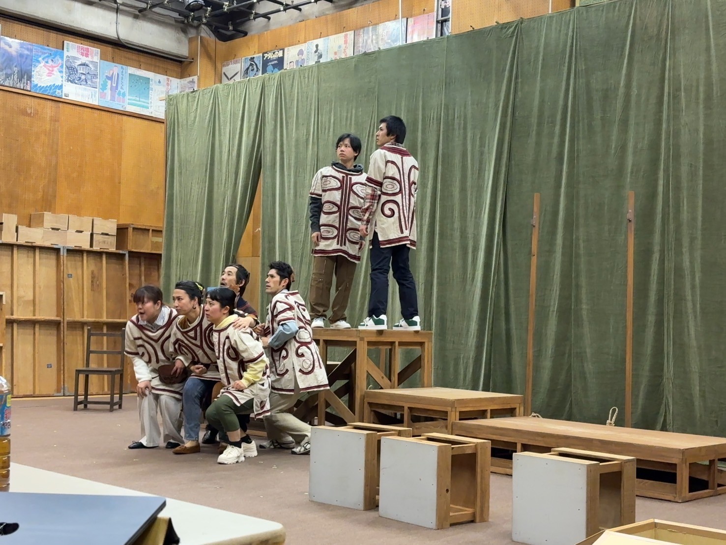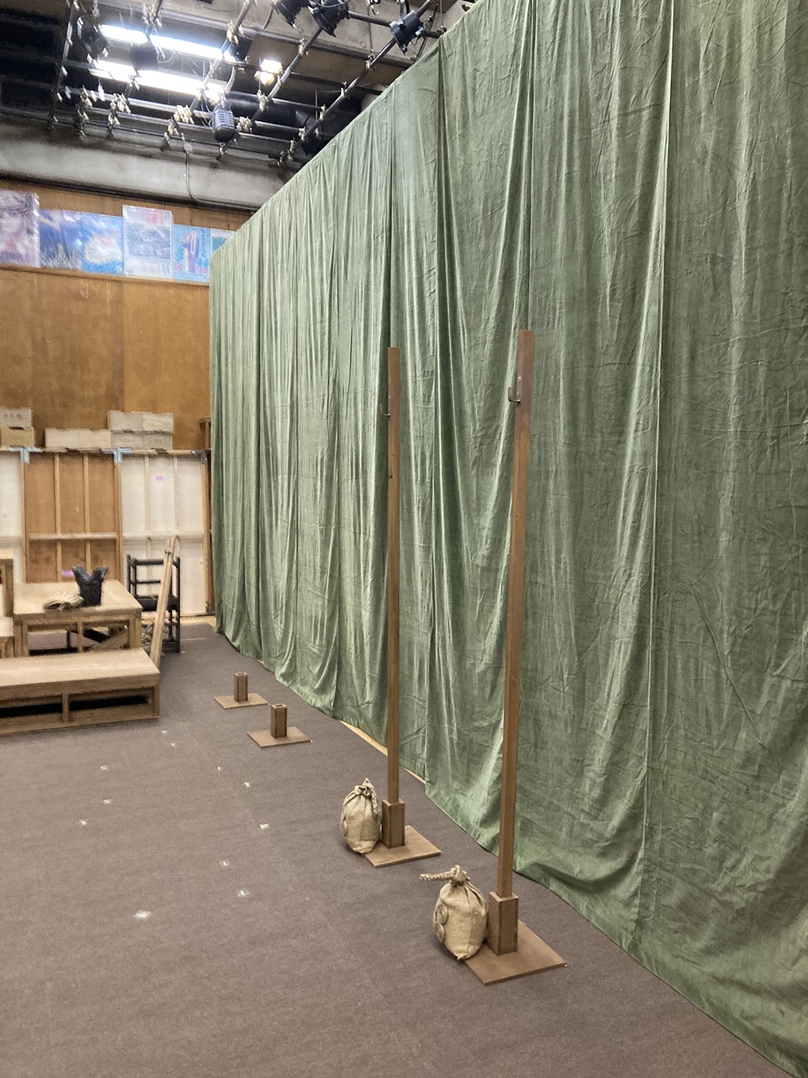 稽古場ではセットを組み立てて、実際の舞台と同じ大きさで練習をしています。