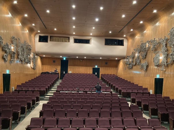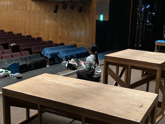9日は「ホモルー」班は倉庫で荷下ろし、「行きたい~」班は紀伊國屋ホールの仕込みです。
