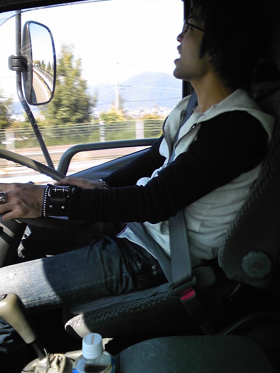 写真は運転中の遅刻した岡山君です(笑)