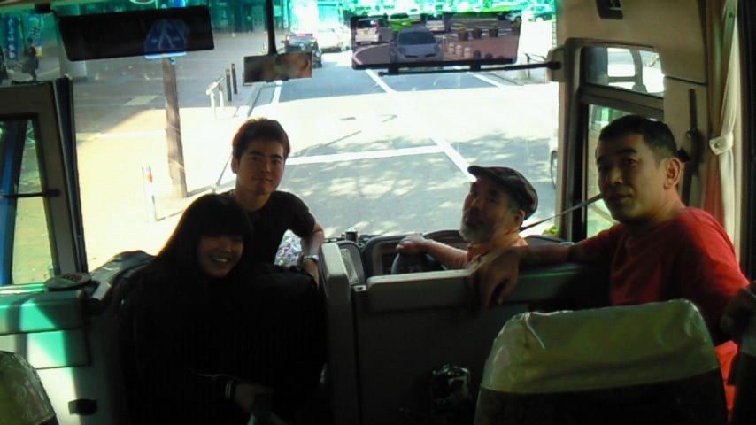 大型バスで進入するには少々大変な切り返しですが、照明部の河崎さんの運転で難なくスルーで拍手喝采。同じく運転をしている杉本さんのジェラシーにも似た表情がなんとも言えませんでした。